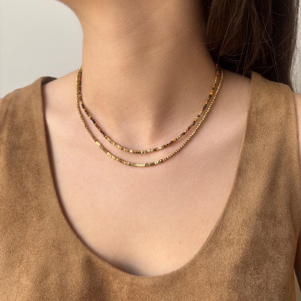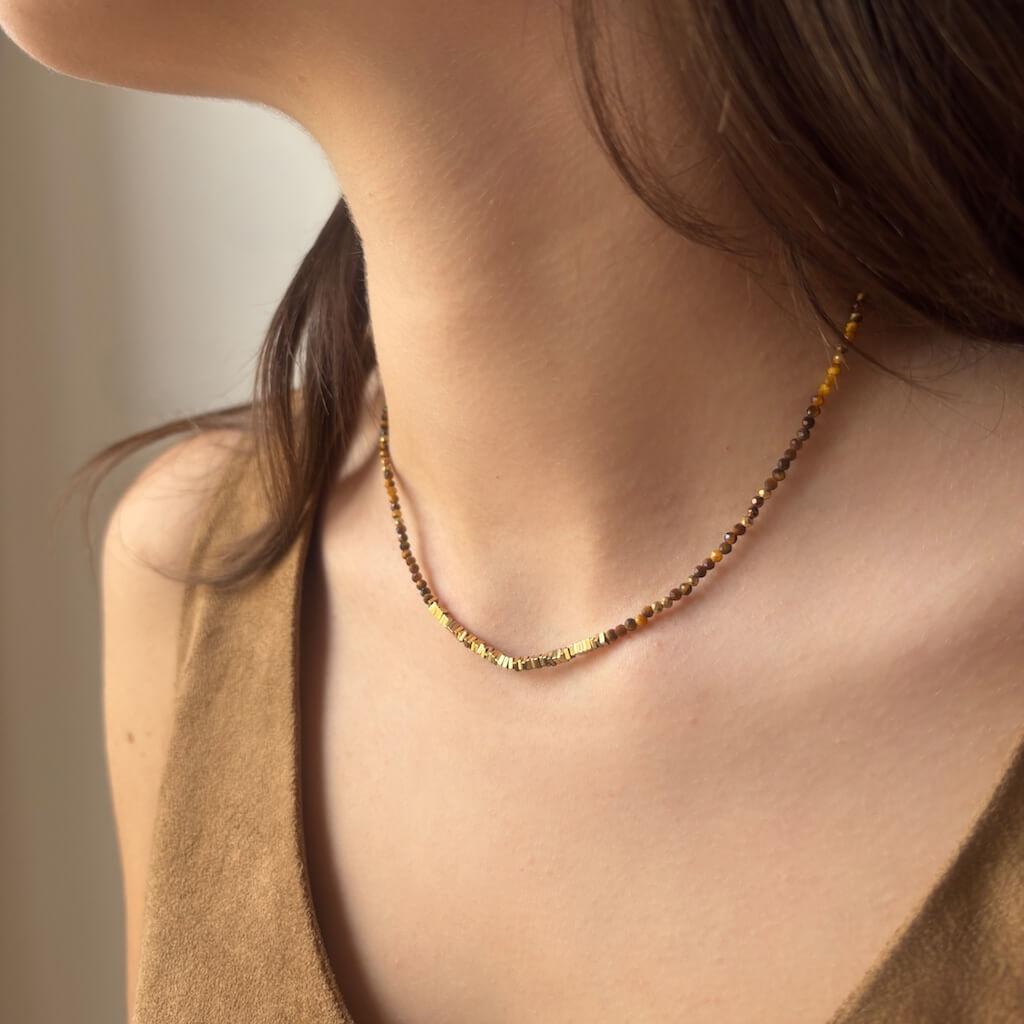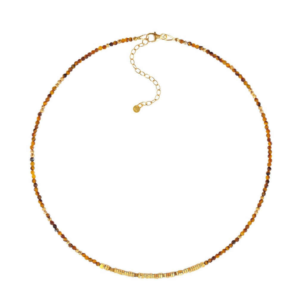 Tiger's Eye Sunburst Choker Bar Necklace – gold Hematite