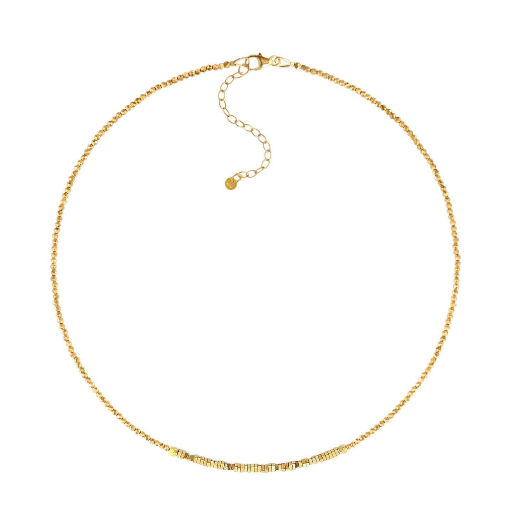 Apatite Sunburst Choker Bar Necklace – gold Hematite