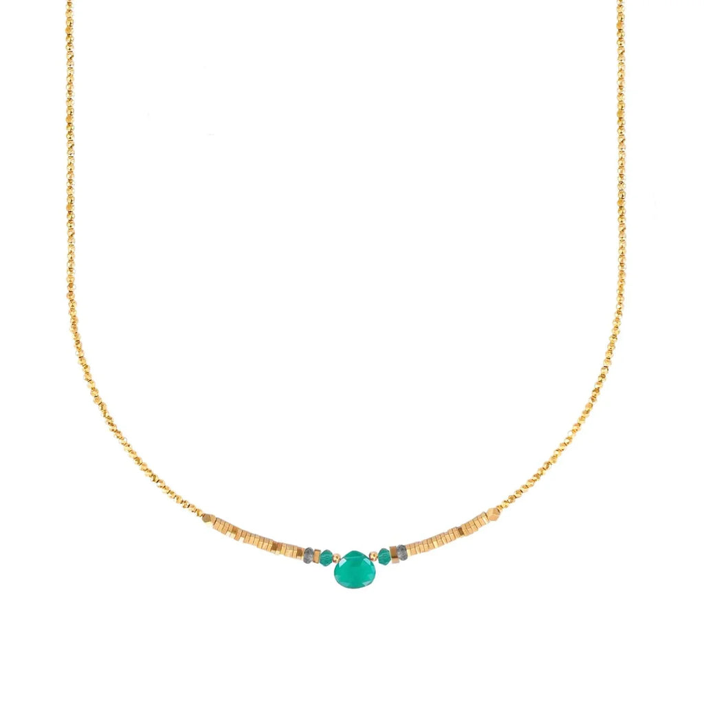 Chrysoprase Drop & Malachite Beads Choker Necklace