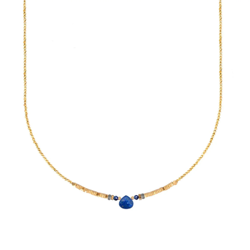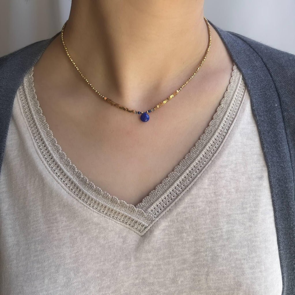 Lapis Lazuli & Hematite Sunburst Choker Bar Necklace