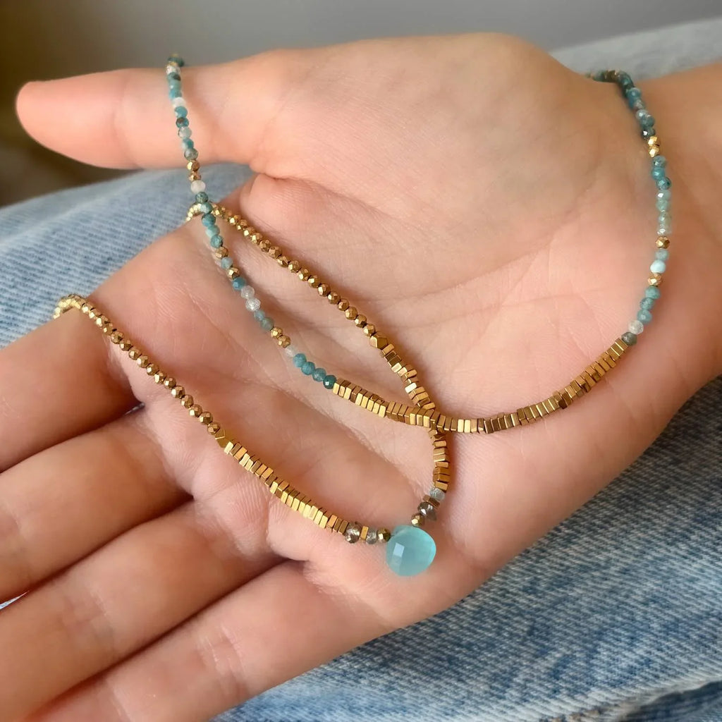 Turquoise Jade Drops and Tourmaline Beaded Necklace