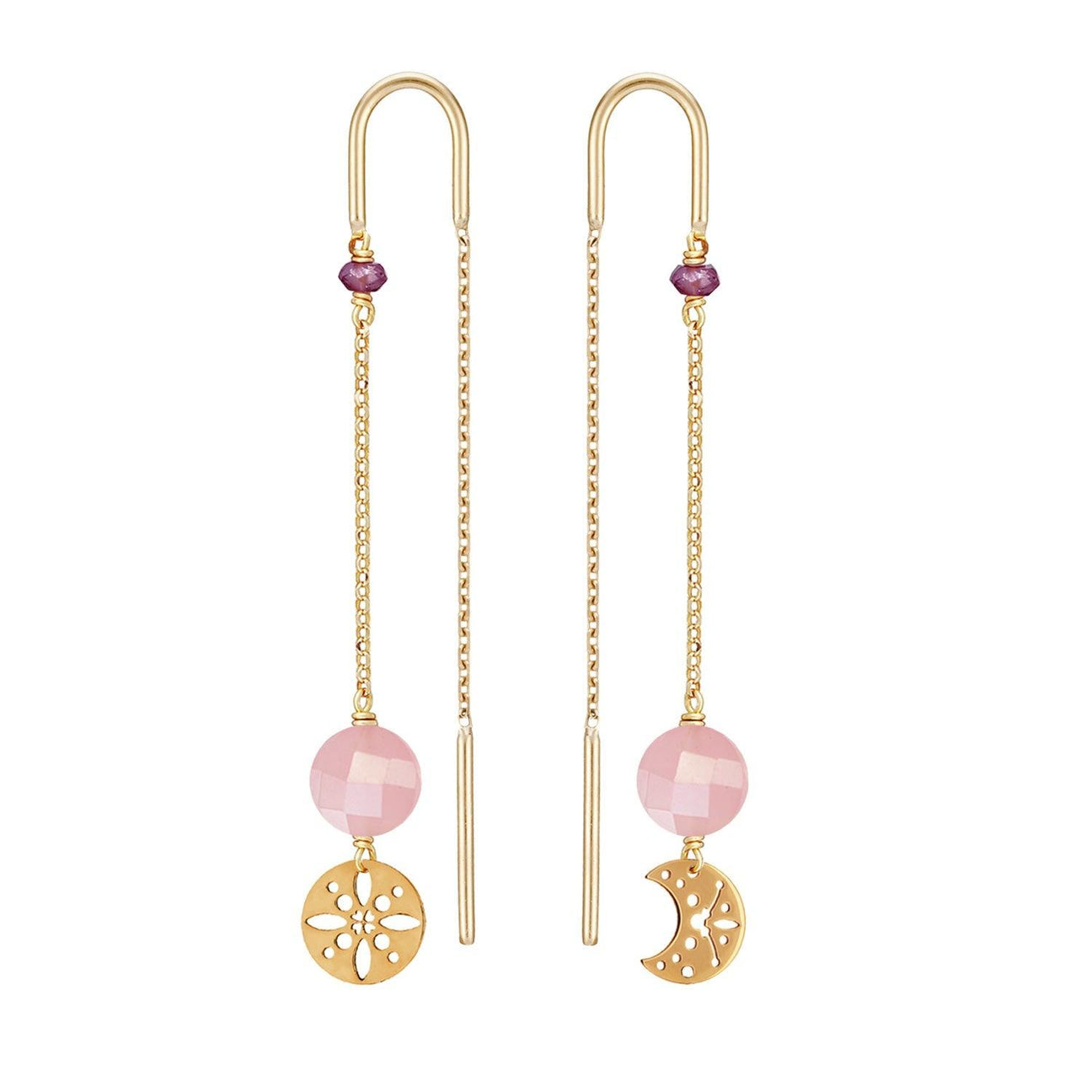 Boucles d'Oreilles Lune et Soleil Or 18ct Quartz Guava rose