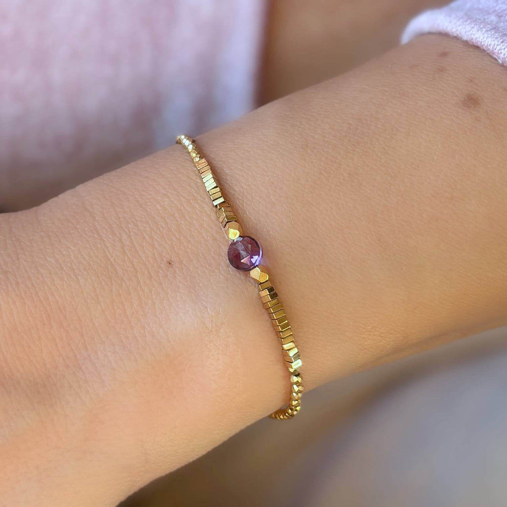 Bracelet Pastille Améthyste & Hématite Dorée -Or Laminé
