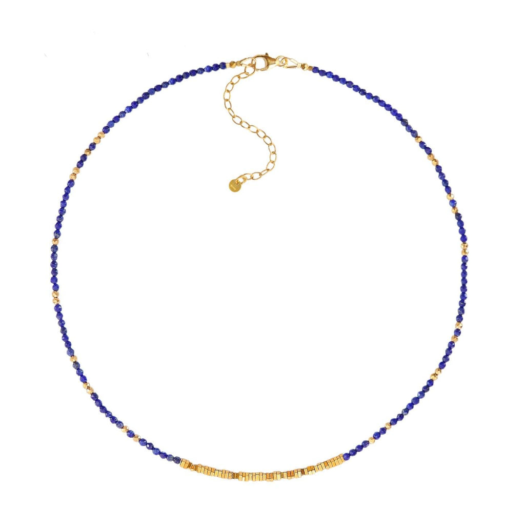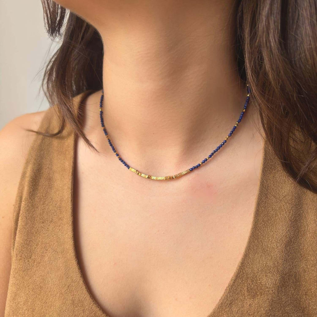 Collier ras-de-cou Sunburst Lapis Lazuli Hématite Dorée