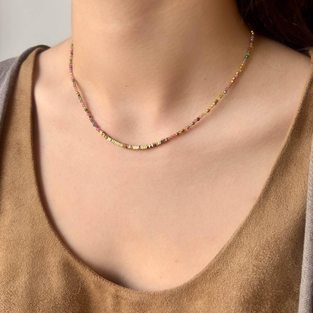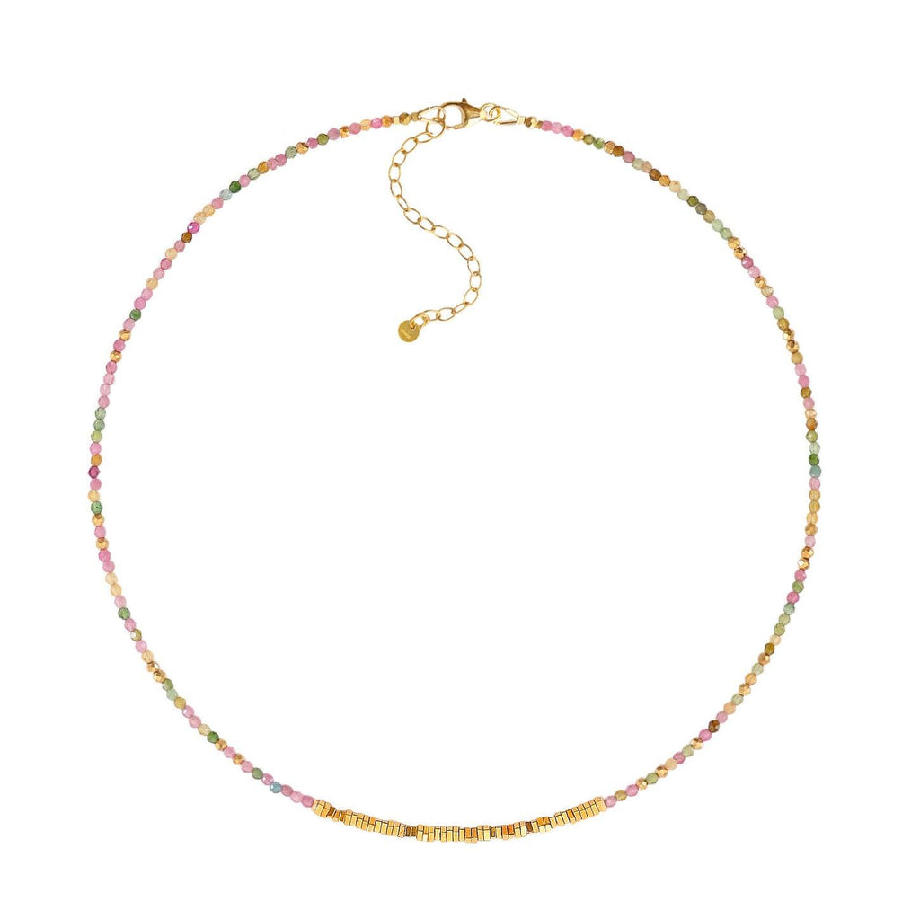 Collier ras-de-cou Sunburst Tourmaline Multicolore Hématite Dorée