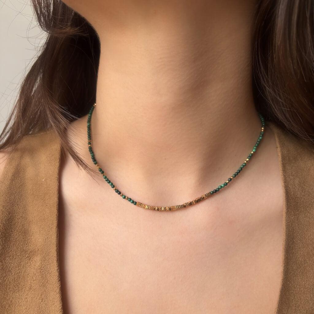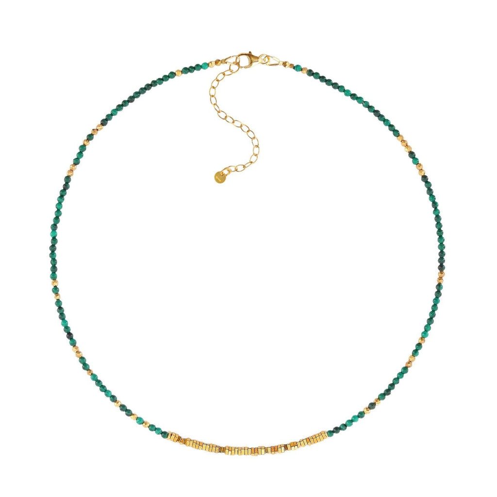 Collier ras-de-cou Sunburst Malachite Hématite Dorée