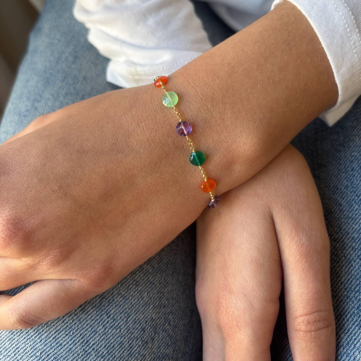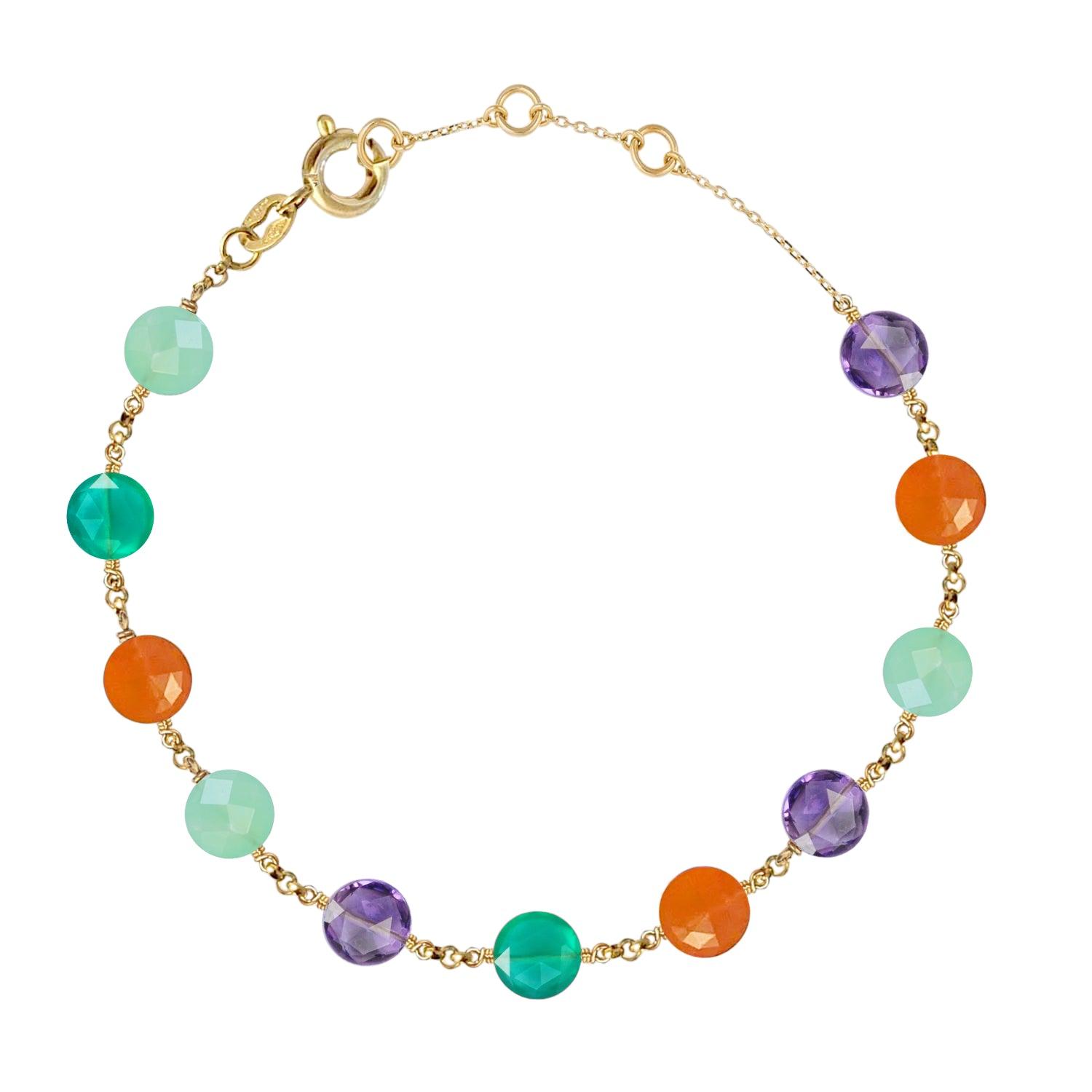Pop Galaxy Eternity Bracelet Carnelian, Green Agate, Chrysoprase, Amethyst - 18k Gold