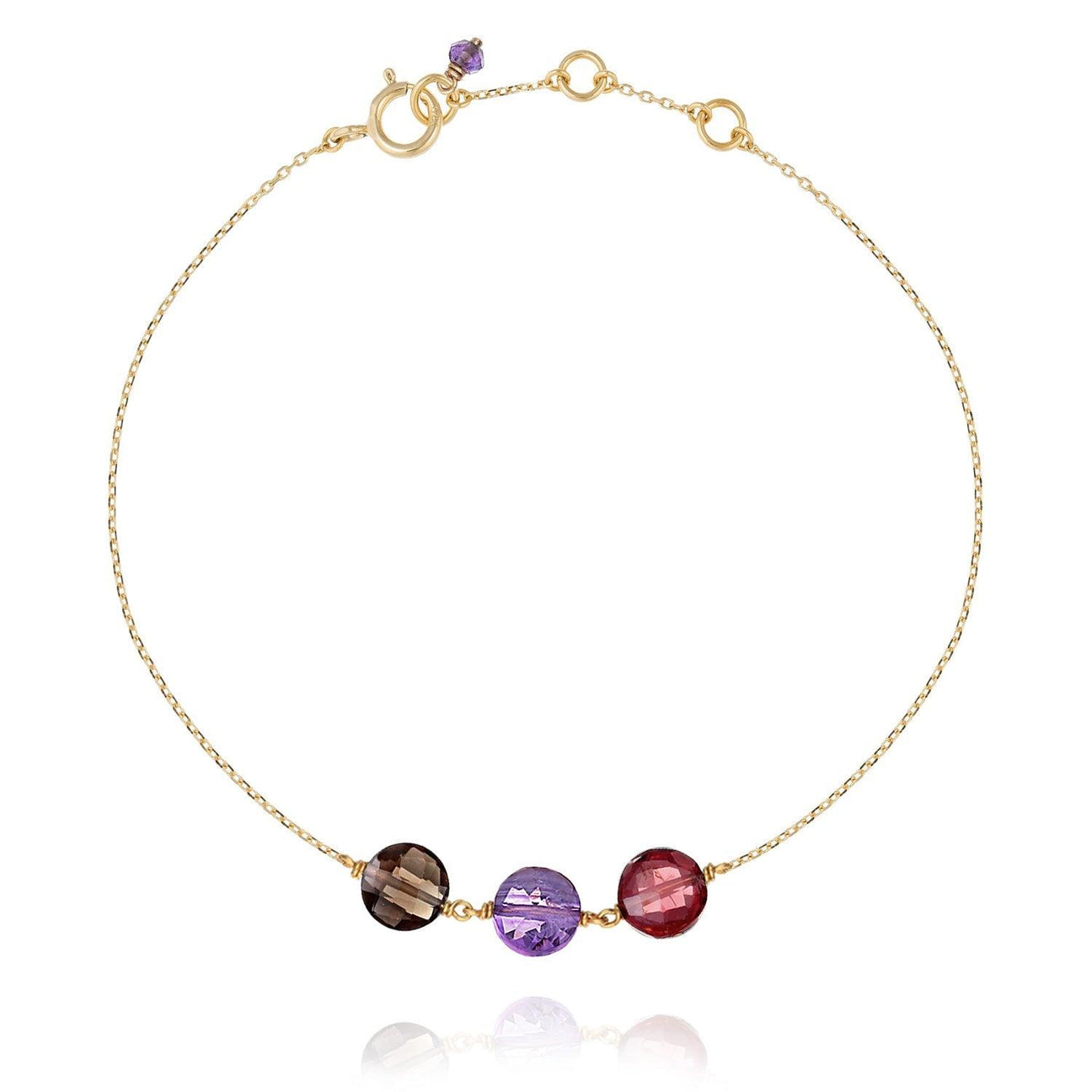 Trio Pastille Bracelet Amethyst, Red Garnet, Smoky Quartz -18k Gold